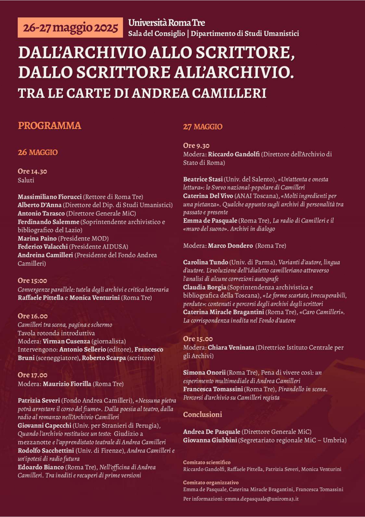 Per info: Università Roma Tre: https://t.ly/k8nEq - Fondo Andrea Camilleri: https://t.ly/B2yas